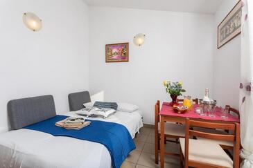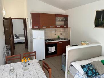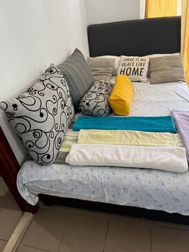 Ferienwohnung bietet Platz für 5 Gäste. Die Betten sind in Schlafzimmern, die es 1 gibt, und in Wohnzimmer, innerhalb einer Gesamtfläche von 31m2, angeordnet. Die Gäste haben einen eigenen Balkon zur Verfügung, auf der sie in warmen Sommernächten genießen können. Das Apartment bietet Meerblick. Es ist erlaubt, Speisen auf dem Gemeinschafts-Grill vorzubereiten.