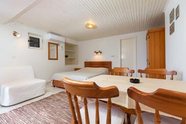 Studio bietet Platz für 2 Gäste. Die Betten sind in Schlafzimmern, die es 1 gibt, innerhalb einer Gesamtfläche von 23m2, angeordnet. Die Gäste haben eine eigene Terrasse zur Verfügung, auf der sie in warmen Sommernächten genießen können. Das Studio-Apartment bietet Meerblick. Es ist erlaubt, Speisen auf dem Gemeinschafts-Grill vorzubereiten. In der Unterkunftseinheit besteht die Möglichkeit des Mitbringens von Haustieren gegen Aufpreis.