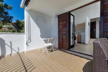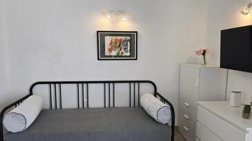 Ferienwohnung bietet Platz für 4 Gäste. Die Betten sind in Schlafzimmern, die es 1 gibt, und in Wohnzimmer, innerhalb einer Gesamtfläche von 33m2, angeordnet. Die Gäste haben eine eigene Terrasse zur Verfügung, auf der sie in warmen Sommernächten genießen können. Das Apartment bietet Meerblick. Es ist erlaubt, Speisen auf dem Gemeinschafts-Grill vorzubereiten. In der Unterkunftseinheit besteht die Möglichkeit des Mitbringens von Haustieren gegen Aufpreis.