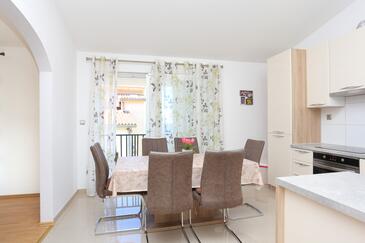 Ferienwohnung bietet Platz für 10 Gäste. Die Betten sind in Schlafzimmern, die es 4 gibt, innerhalb einer Gesamtfläche von 99m2, angeordnet. Die Gäste haben eine eigene Terrasse zur Verfügung, auf der sie in warmen Sommernächten genießen können. Das Apartment bietet Meerblick. Es ist erlaubt, Speisen auf dem Gemeinschafts-Grill vorzubereiten. In der Unterkunftseinheit besteht die Möglichkeit des Mitbringens von Haustieren gegen Aufpreis.