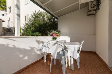 Ferienwohnung bietet Platz für 5 Gäste. Die Betten sind in Schlafzimmern, die es 1 gibt, und in Wohnzimmer, innerhalb einer Gesamtfläche von 33m2, angeordnet. Die Gäste haben eine eigene Terrasse zur Verfügung, auf der sie in warmen Sommernächten genießen können. Es ist erlaubt, Speisen auf dem Gemeinschafts-Grill vorzubereiten.