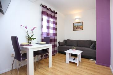 Ferienwohnung bietet Platz für 4 Gäste. Die Betten sind in Schlafzimmern, die es 1 gibt, und in Wohnzimmer, innerhalb einer Gesamtfläche von 34m2, angeordnet. Die Gäste haben eine eigene Terrasse zur Verfügung, auf der sie in warmen Sommernächten genießen können. Es ist erlaubt, Speisen auf dem Gemeinschafts-Grill vorzubereiten. In der Unterkunftseinheit besteht die Möglichkeit des Mitbringens von Haustieren gegen Aufpreis.