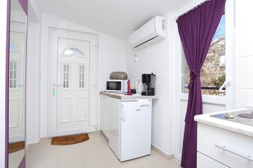 Ferienwohnung bietet Platz für 4 Gäste. Die Betten sind in Schlafzimmern, die es 1 gibt, und in Wohnzimmer, innerhalb einer Gesamtfläche von 34m2, angeordnet. Die Gäste haben eine eigene Terrasse zur Verfügung, auf der sie in warmen Sommernächten genießen können. Es ist erlaubt, Speisen auf dem Gemeinschafts-Grill vorzubereiten. In der Unterkunftseinheit besteht die Möglichkeit des Mitbringens von Haustieren gegen Aufpreis.