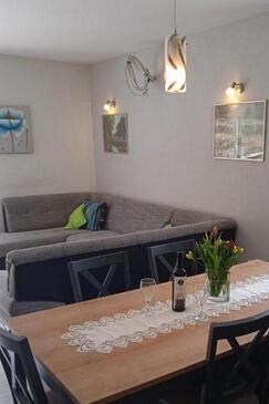 Haus bietet Platz für 6 Gäste. Die Betten sind in Schlafzimmern, die es 2 gibt, und in Wohnzimmer, innerhalb einer Gesamtfläche von 57m2, angeordnet. Die Gäste haben einen eigenen Balkon zur Verfügung, auf der sie in warmen Sommernächten genießen können.