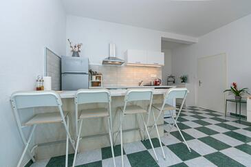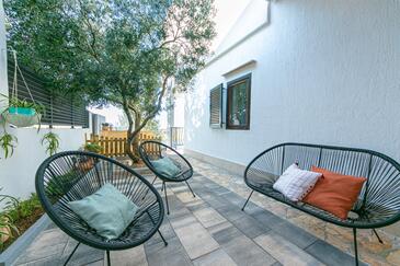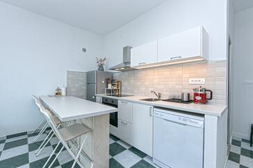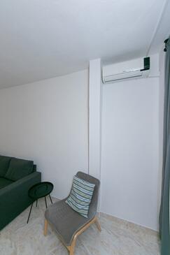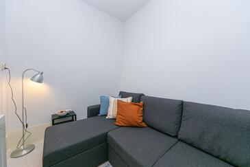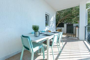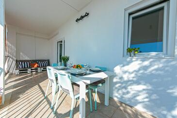 Ferienwohnung bietet Platz für 6 Gäste. Die Betten sind in Schlafzimmern, die es 2 gibt, und in Wohnzimmer, innerhalb einer Gesamtfläche von 49m2, angeordnet. Die Gäste haben eine eigene Terrasse zur Verfügung, auf der sie in warmen Sommernächten genießen können. Das Apartment bietet Meerblick. Es ist erlaubt, Speisen auf dem Gemeinschafts-Grill vorzubereiten. In der Unterkunftseinheit besteht die Möglichkeit des Mitbringens von Haustieren gegen Aufpreis.