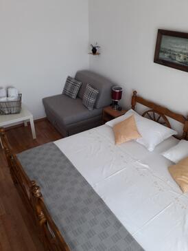 Ferienwohnung bietet Platz für 4 Gäste. Die Betten sind in Schlafzimmern, die es 2 gibt, innerhalb einer Gesamtfläche von 37m2, angeordnet. Die Gäste haben einen eigenen Balkon zur Verfügung, auf der sie in warmen Sommernächten genießen können. Das Apartment bietet Meerblick. Es ist erlaubt, Speisen auf dem Gemeinschafts-Grill vorzubereiten. Die reservierte Unterkunftseinheit verfügt über einen gemeinsame Terrasse.