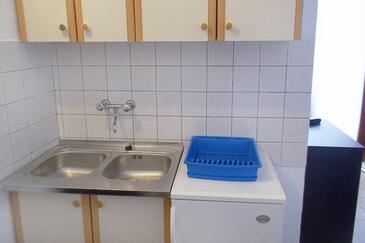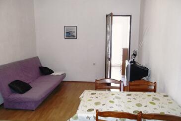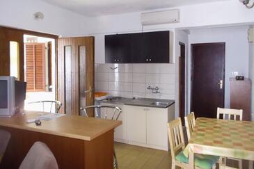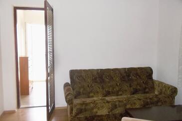 Ferienwohnung bietet Platz für 5 Gäste. Die Betten sind in Schlafzimmern, die es 2 gibt, und in Esszimmer, innerhalb einer Gesamtfläche von 39m2, angeordnet. Die Gäste haben eine eigene Terrasse zur Verfügung, auf der sie in warmen Sommernächten genießen können. Das Apartment bietet Meerblick. Es ist erlaubt, Speisen auf dem Gemeinschafts-Grill vorzubereiten.
