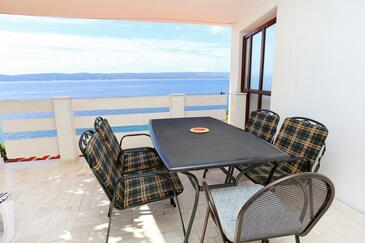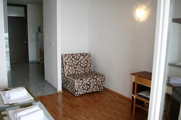 Ferienwohnung bietet Platz für 6 Gäste. Die Betten sind in Schlafzimmern, die es 3 gibt, innerhalb einer Gesamtfläche von 52m2, angeordnet. Die Gäste haben eine eigene Terrasse zur Verfügung, auf der sie in warmen Sommernächten genießen können. Das Apartment bietet Meerblick. Es ist erlaubt, Speisen auf dem Gemeinschafts-Grill vorzubereiten. In der Unterkunftseinheit besteht die Möglichkeit des Mitbringens von Haustieren gegen Aufpreis.