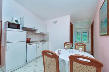 Ferienwohnung bietet Platz für 4 Gäste. Die Betten sind in Schlafzimmern, die es 2 gibt, innerhalb einer Gesamtfläche von 35m2, angeordnet. Die Gäste haben eine eigene Terrasse zur Verfügung, auf der sie in warmen Sommernächten genießen können. Das Apartment bietet Meerblick. Es ist erlaubt, Speisen auf dem Gemeinschafts-Grill vorzubereiten.