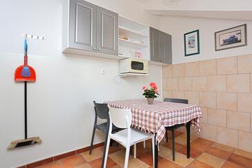 Ferienwohnung bietet Platz für 4 Gäste. Die Betten sind in Schlafzimmern, die es 2 gibt, innerhalb einer Gesamtfläche von 33m2, angeordnet. Die Gäste haben eine eigene Terrasse zur Verfügung, auf der sie in warmen Sommernächten genießen können. Das Apartment bietet Meerblick.