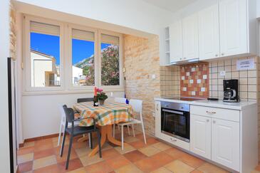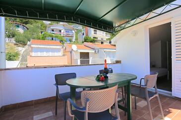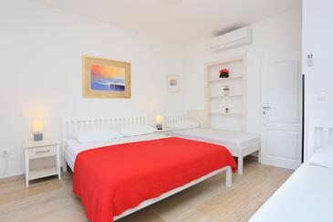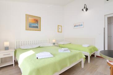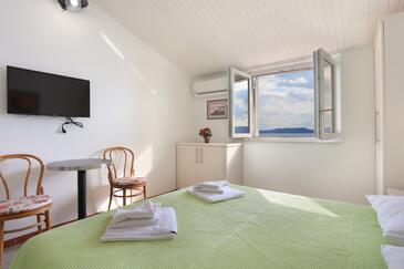 Ferienwohnung bietet Platz für 4 Gäste. Die Betten sind in Schlafzimmern, die es 2 gibt, innerhalb einer Gesamtfläche von 33m2, angeordnet. Die Gäste haben eine eigene Terrasse zur Verfügung, auf der sie in warmen Sommernächten genießen können. Das Apartment bietet Meerblick.