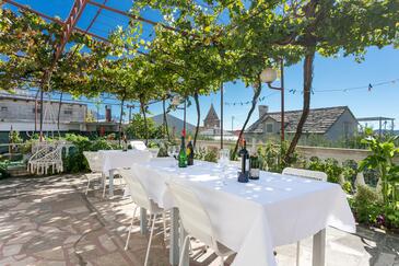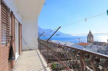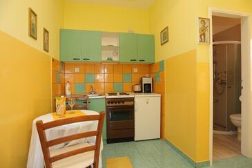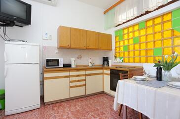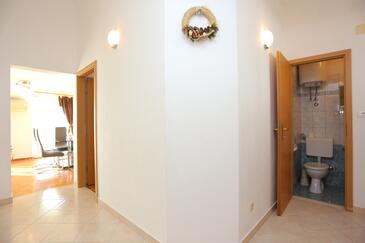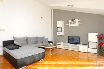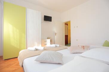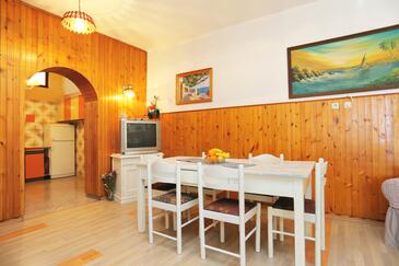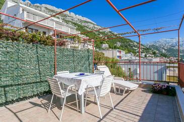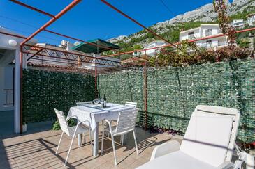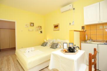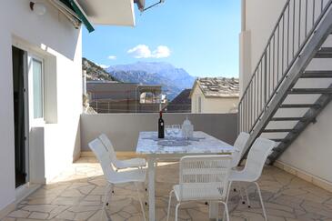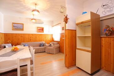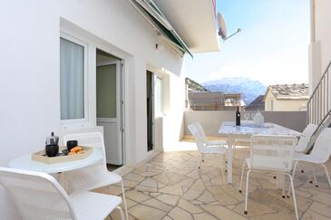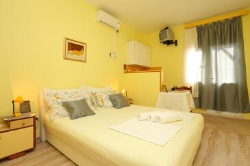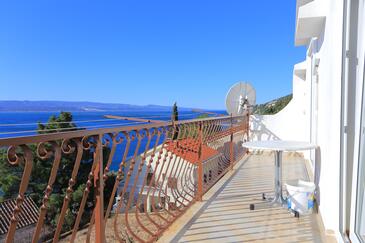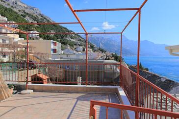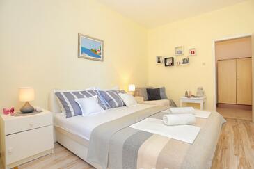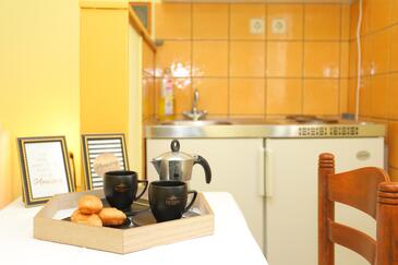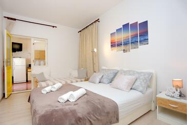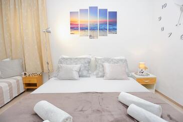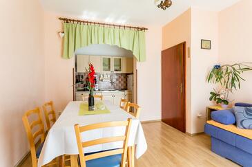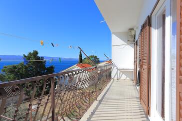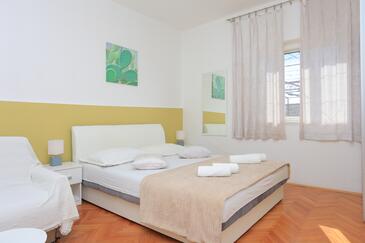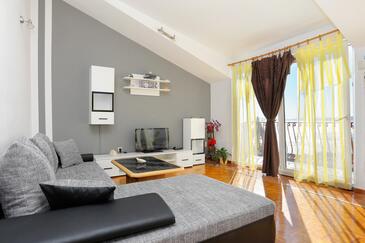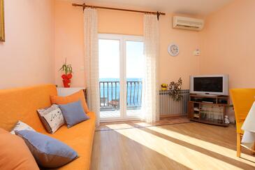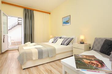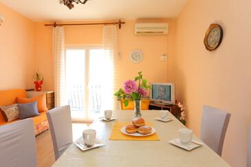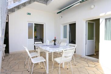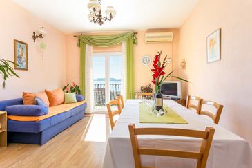 Ferienwohnung bietet Platz für 6 Gäste. Die Betten sind in Schlafzimmern, die es 2 gibt, und in Wohnzimmer, innerhalb einer Gesamtfläche von 59m2, angeordnet. Die Gäste haben eine eigene Terrasse zur Verfügung, auf der sie in warmen Sommernächten genießen können. Das Apartment bietet Meerblick. Es ist erlaubt, Speisen auf dem Gemeinschafts-Grill vorzubereiten.