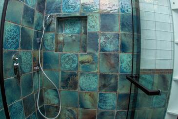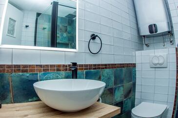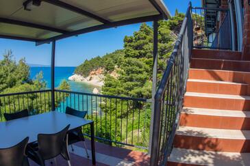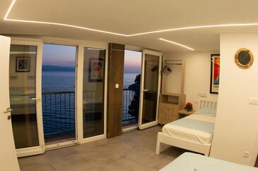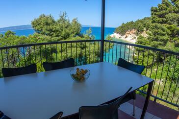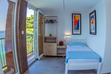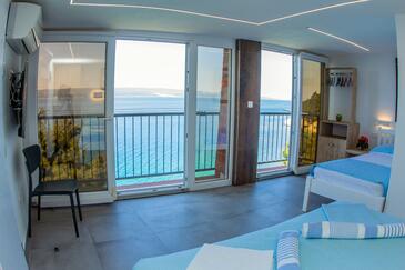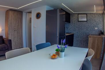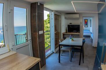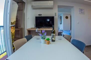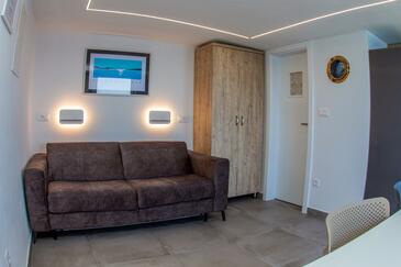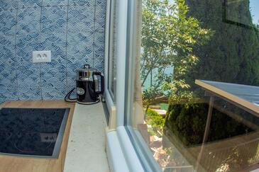 Ferienwohnung bietet Platz für 4 Gäste. Die Betten sind in Schlafzimmern, die es 1 gibt, und in Wohnzimmer, innerhalb einer Gesamtfläche von 42m2, angeordnet. Die Gäste haben eine eigene Terrasse zur Verfügung, auf der sie in warmen Sommernächten genießen können. Das Apartment bietet Meerblick. Es ist erlaubt, Speisen auf dem Gemeinschafts-Grill vorzubereiten.
