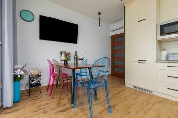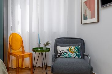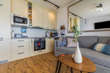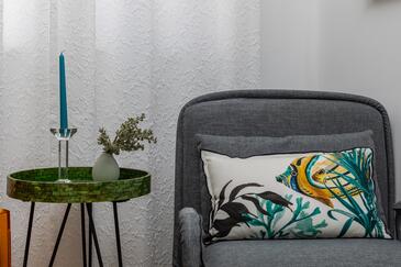 Ferienwohnung bietet Platz für 5 Gäste. Die Betten sind in Schlafzimmern, die es 1 gibt, und in Wohnzimmer, innerhalb einer Gesamtfläche von 39m2, angeordnet. Die Gäste haben einen eigenen Balkon zur Verfügung, auf der sie in warmen Sommernächten genießen können. Das Apartment bietet Meerblick.