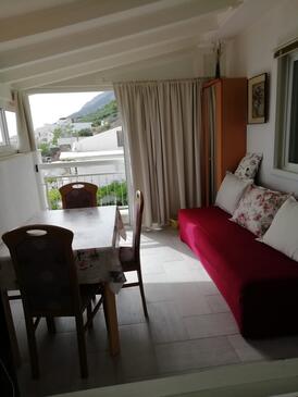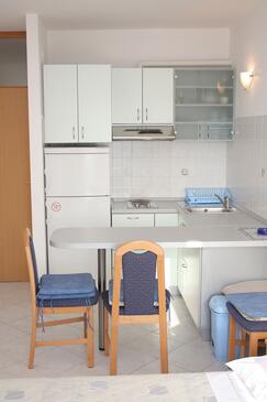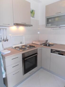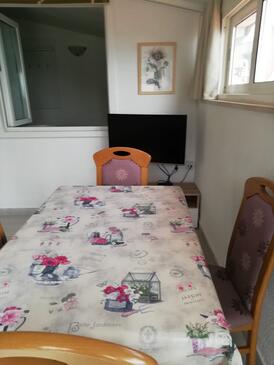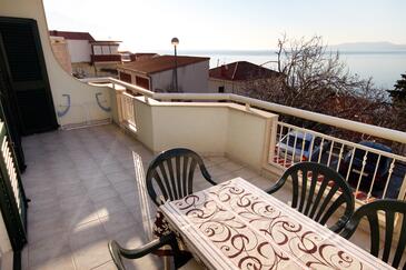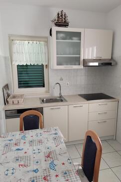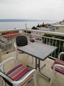 Ferienwohnung bietet Platz für 4 Gäste. Die Betten sind in Schlafzimmern, die es 2 gibt, innerhalb einer Gesamtfläche von 30m2, angeordnet. Die Gäste haben eine eigene Terrasse zur Verfügung, auf der sie in warmen Sommernächten genießen können. Das Apartment bietet Meerblick. Es ist erlaubt, Speisen auf dem Gemeinschafts-Grill vorzubereiten.