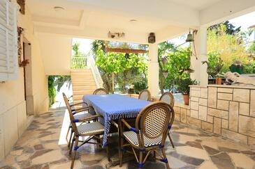 Ferienwohnung bietet Platz für 6 Gäste. Die Betten sind in Schlafzimmern, die es 3 gibt, innerhalb einer Gesamtfläche von 64m2, angeordnet. Die Gäste haben eine eigene Terrasse zur Verfügung, auf der sie in warmen Sommernächten genießen können. Das Apartment bietet Meerblick. Es ist erlaubt, Speisen auf dem Gemeinschafts-Grill vorzubereiten. Durch die Terrasse der gebuchten Unterkunftseinheit gehen auch andere Gäste oder Vermieter.