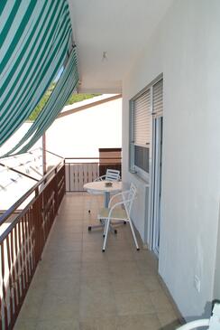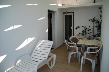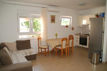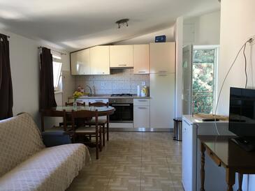 Ferienwohnung bietet Platz für 4 Gäste. Die Betten sind in Schlafzimmern, die es 2 gibt, innerhalb einer Gesamtfläche von 49m2, angeordnet. Die Gäste haben einen eigenen Balkon zur Verfügung, auf der sie in warmen Sommernächten genießen können. Das Apartment bietet Meerblick. Es ist erlaubt, Speisen auf dem Gemeinschafts-Grill vorzubereiten.