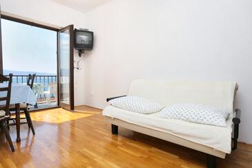 Ferienwohnung bietet Platz für 7 Gäste. Die Betten sind in Schlafzimmern, die es 2 gibt, und in Wohnzimmer, innerhalb einer Gesamtfläche von 65m2, angeordnet. Die Gäste haben einen eigenen Balkon zur Verfügung, auf der sie in warmen Sommernächten genießen können. Das Apartment bietet Meerblick.