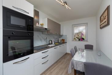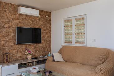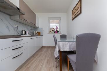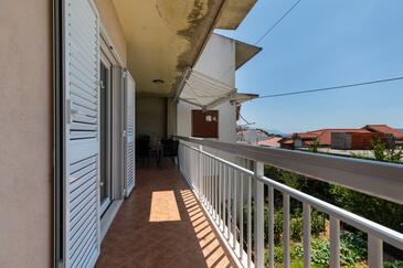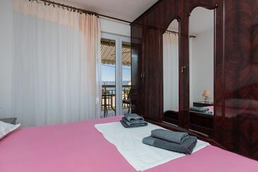 Ferienwohnung bietet Platz für 6 Gäste. Die Betten sind in Schlafzimmern, die es 3 gibt, innerhalb einer Gesamtfläche von 84m2, angeordnet. Die Gäste haben einen eigenen Balkon zur Verfügung, auf der sie in warmen Sommernächten genießen können. Das Apartment bietet Meerblick. Es ist erlaubt, Speisen auf dem Gemeinschafts-Grill vorzubereiten.