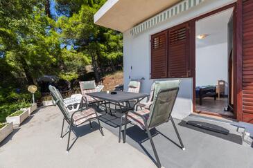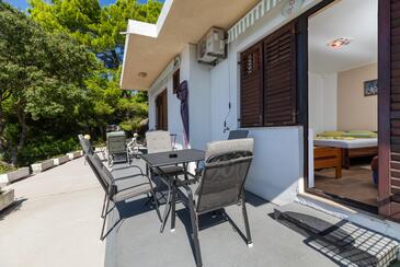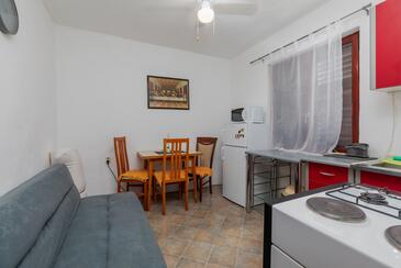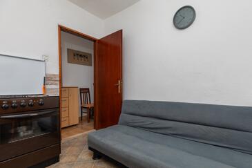 Ferienwohnung bietet Platz für 4 Gäste. Die Betten sind in Schlafzimmern, die es 1 gibt, und in Esszimmer, innerhalb einer Gesamtfläche von 31m2, angeordnet. Die Gäste haben eine eigene Terrasse zur Verfügung, auf der sie in warmen Sommernächten genießen können. Das Apartment bietet Meerblick. Es ist erlaubt, Speisen auf dem Gemeinschafts-Grill vorzubereiten. Durch die Terrasse der gebuchten Unterkunftseinheit gehen auch andere Gäste oder Vermieter.
