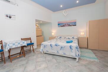 Haus bietet Platz für 8 Gäste. Die Betten sind in Schlafzimmern, die es 3 gibt, innerhalb einer Gesamtfläche von 79m2, angeordnet. Die Gäste haben einen eigenen Balkon zur Verfügung, auf der sie in warmen Sommernächten genießen können. Das Haus bietet Meerblick. Es ist erlaubt, Speisen auf dem Gemeinschafts-Grill vorzubereiten. In der Unterkunftseinheit besteht die Möglichkeit des Mitbringens von Haustieren, und die Dienstleistung ist im Preis der Unterkunft enthalten.