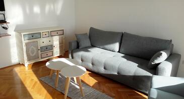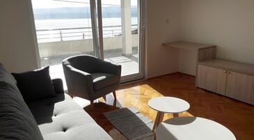 Ferienwohnung bietet Platz für 4 Gäste. Die Betten sind in Schlafzimmern, die es 2 gibt, innerhalb einer Gesamtfläche von 45m2, angeordnet. Die Gäste haben eine eigene Terrasse zur Verfügung, auf der sie in warmen Sommernächten genießen können. Das Apartment bietet Meerblick. Es ist erlaubt, Speisen auf dem Gemeinschafts-Grill vorzubereiten. Durch die Terrasse der gebuchten Unterkunftseinheit gehen auch andere Gäste oder Vermieter.