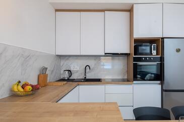 Ferienwohnung bietet Platz für 4 Gäste. Die Betten sind in Schlafzimmern, die es 1 gibt, und in Wohnzimmer, innerhalb einer Gesamtfläche von 40m2, angeordnet. Das Apartment bietet Meerblick. Es ist erlaubt, Speisen auf dem Gemeinschafts-Grill vorzubereiten. Die reservierte Unterkunftseinheit verfügt über einen gemeinsame Terrasse.