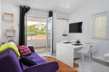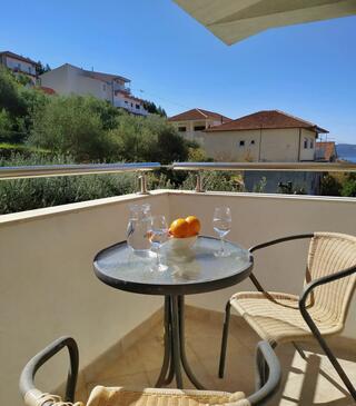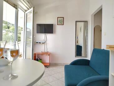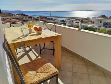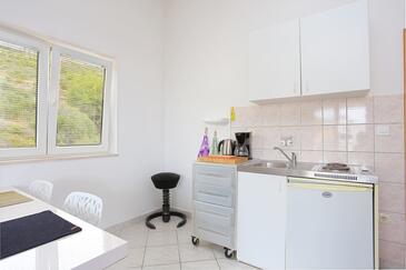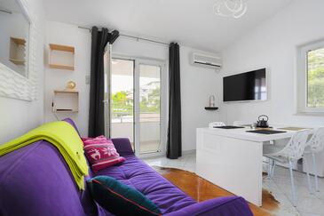 Ferienwohnung bietet Platz für 2 Gäste. Die Betten sind in Schlafzimmern, die es 1 gibt, innerhalb einer Gesamtfläche von 27m2, angeordnet. Die Gäste haben eine eigene Terrasse zur Verfügung, auf der sie in warmen Sommernächten genießen können. Das Apartment bietet Meerblick. Es ist erlaubt, Speisen auf dem Gemeinschafts-Grill vorzubereiten.