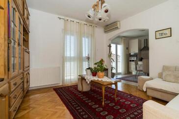 Ferienwohnung bietet Platz für 4 Gäste. Die Betten sind in Schlafzimmern, die es 1 gibt, und in Wohnzimmer, innerhalb einer Gesamtfläche von 47m2, angeordnet. Die Gäste haben eine eigene Terrasse zur Verfügung, auf der sie in warmen Sommernächten genießen können. Das Apartment bietet Meerblick. Es ist erlaubt, Speisen auf dem Gemeinschafts-Grill vorzubereiten.