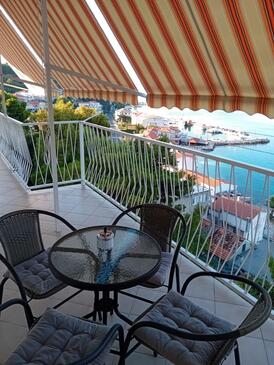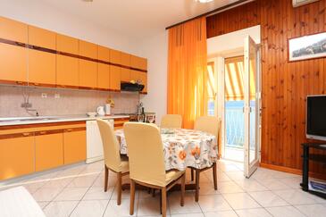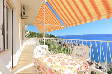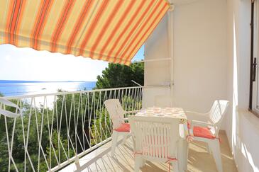 Ferienwohnung bietet Platz für 4 Gäste. Die Betten sind in Schlafzimmern, die es 2 gibt, innerhalb einer Gesamtfläche von 64m2, angeordnet. Die Gäste haben eine eigene Terrasse zur Verfügung, auf der sie in warmen Sommernächten genießen können. Das Apartment bietet Meerblick. Es ist erlaubt, Speisen auf dem Gemeinschafts-Grill vorzubereiten.