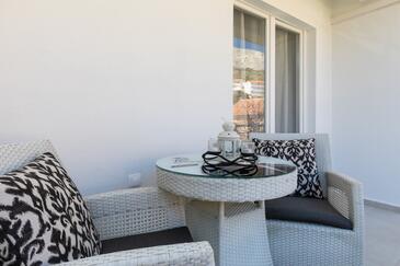 Ferienwohnung bietet Platz für 6 Gäste. Die Betten sind in Schlafzimmern, die es 3 gibt, innerhalb einer Gesamtfläche von 73m2, angeordnet. Die Gäste haben eine eigene Terrasse zur Verfügung, auf der sie in warmen Sommernächten genießen können. Das Apartment bietet Meerblick. Es ist erlaubt, Speisen auf dem Gemeinschafts-Grill vorzubereiten.