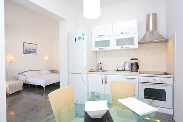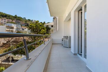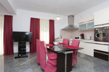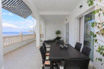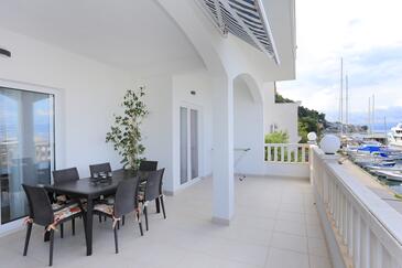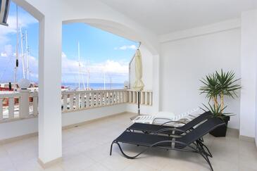 Ferienwohnung bietet Platz für 6 Gäste. Die Betten sind in Schlafzimmern, die es 3 gibt, innerhalb einer Gesamtfläche von 73m2, angeordnet. Die Gäste haben eine eigene Terrasse zur Verfügung, auf der sie in warmen Sommernächten genießen können. Das Apartment bietet Meerblick. Es ist erlaubt, Speisen auf dem Gemeinschafts-Grill vorzubereiten.
