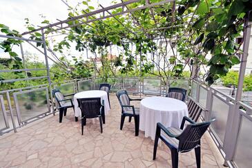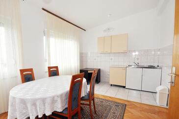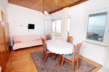 Ferienwohnung bietet Platz für 5 Gäste. Die Betten sind in Schlafzimmern, die es 2 gibt, und in Esszimmer, innerhalb einer Gesamtfläche von 56m2, angeordnet. Die Gäste haben einen eigenen Balkon zur Verfügung, auf der sie in warmen Sommernächten genießen können. Das Apartment bietet Meerblick. Es ist erlaubt, Speisen auf dem Gemeinschafts-Grill vorzubereiten.