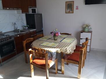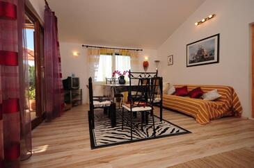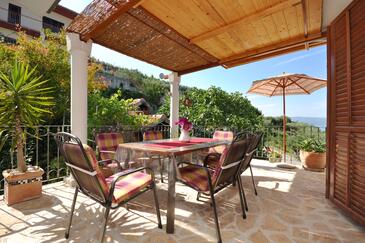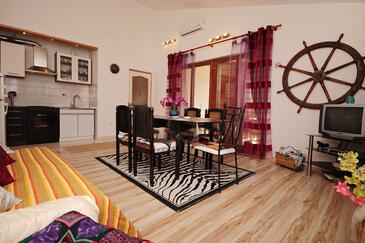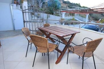 Ferienwohnung bietet Platz für 4 Gäste. Die Betten sind in Schlafzimmern, die es 2 gibt, innerhalb einer Gesamtfläche von 60m2, angeordnet. Die Gäste haben eine eigene Terrasse zur Verfügung, auf der sie in warmen Sommernächten genießen können. Das Apartment bietet Meerblick. Für vollen Genuss und Entspannung gibt es einen privaten Grill für Gäste dieser Unterkunft. Während ihres Aufenthalts können Gäste das gemeinsam zur Nutzung stehende Schwimmbad benutzen. In der gebuchten Unterkunftseinheit zahlt man am Ort ein Depositum ( der Preis ist an der Internetseite angeführt ).