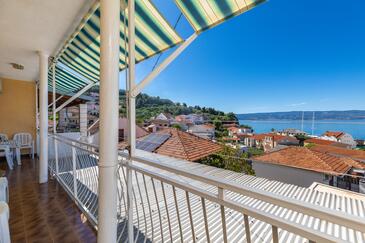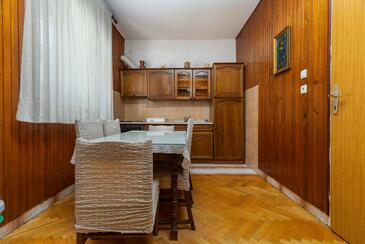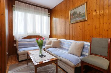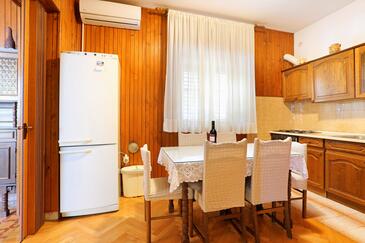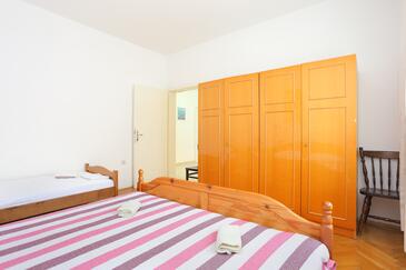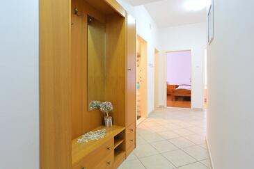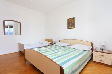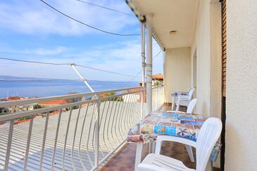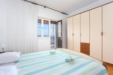 Ferienwohnung bietet Platz für 8 Gäste. Die Betten sind in Schlafzimmern, die es 3 gibt, innerhalb einer Gesamtfläche von 86m2, angeordnet. Die Gäste haben einen eigenen Balkon zur Verfügung, auf der sie in warmen Sommernächten genießen können. Das Apartment bietet Meerblick. Es ist erlaubt, Speisen auf dem Gemeinschafts-Grill vorzubereiten.