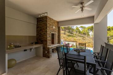 Haus bietet Platz für 8 Gäste. Die Betten sind in Schlafzimmern, die es 4 gibt, innerhalb einer Gesamtfläche von 288m2, angeordnet. Die Gäste haben eine eigene Terrasse zur Verfügung, auf der sie in warmen Sommernächten genießen können. Für vollen Genuss und Entspannung gibt es einen privaten Grill für Gäste dieser Unterkunft. Während ihres Aufenthalts können sich Gäste im privaten Schwimmbad entspannen.