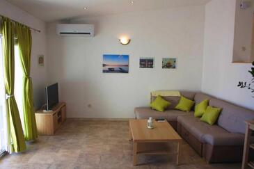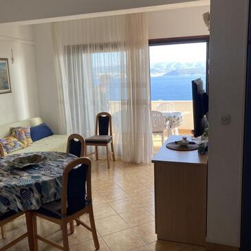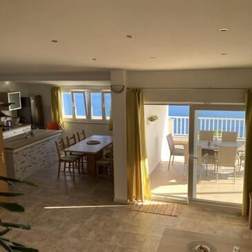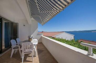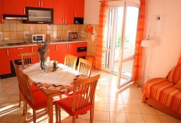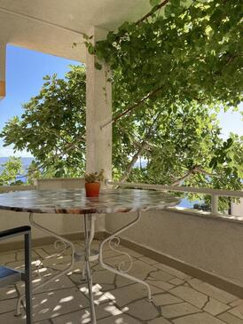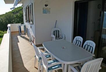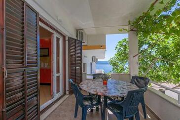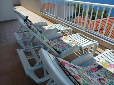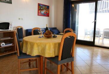 Ferienwohnung bietet Platz für 4 Gäste. Die Betten sind in Schlafzimmern, die es 2 gibt, innerhalb einer Gesamtfläche von 62m2, angeordnet. Die Gäste haben eine eigene Terrasse zur Verfügung, auf der sie in warmen Sommernächten genießen können. Das Apartment bietet Meerblick. Es ist erlaubt, Speisen auf dem Gemeinschafts-Grill vorzubereiten.