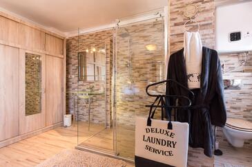 Haus bietet Platz für 12 Gäste. Die Betten sind in Schlafzimmern, die es 5 gibt, innerhalb einer Gesamtfläche von 234m2, angeordnet. Die Gäste haben eine eigene Terrasse zur Verfügung, auf der sie in warmen Sommernächten genießen können. Das Haus bietet Meerblick. Es ist erlaubt, Speisen auf dem Gemeinschafts-Grill vorzubereiten. Während ihres Aufenthalts können Gäste das gemeinsam zur Nutzung stehende Schwimmbad benutzen. In der Unterkunftseinheit besteht die Möglichkeit des Mitbringens von Haustieren, und die Dienstleistung ist im Preis der Unterkunft enthalten.