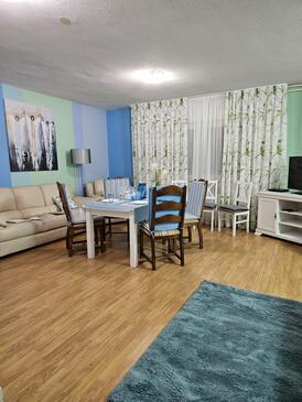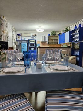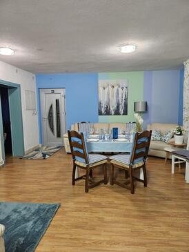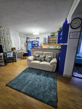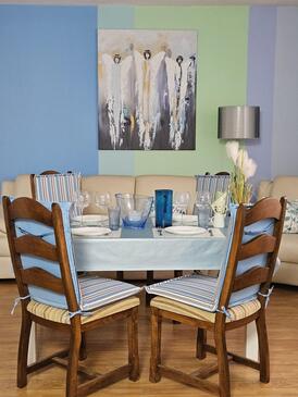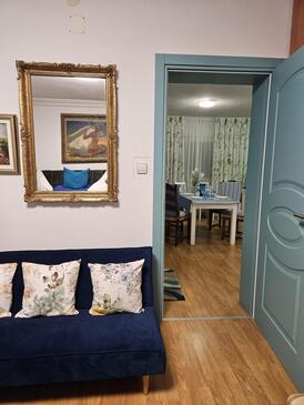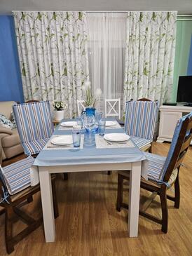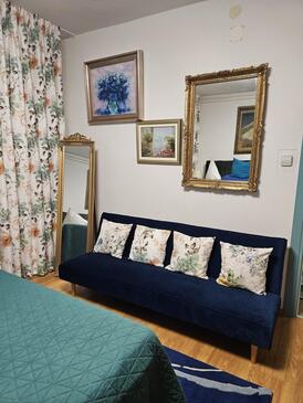 Ferienwohnung bietet Platz für 5 Gäste. Die Betten sind in Schlafzimmern, die es 2 gibt, und in Wohnzimmer, innerhalb einer Gesamtfläche von 65m2, angeordnet. Die Gäste haben eine eigene Terrasse zur Verfügung, auf der sie in warmen Sommernächten genießen können. Es ist erlaubt, Speisen auf dem Gemeinschafts-Grill vorzubereiten. In der gebuchten Unterkunftseinheit zahlt man am Ort ein Depositum ( der Preis ist an der Internetseite angeführt ).