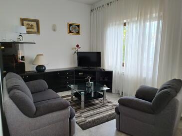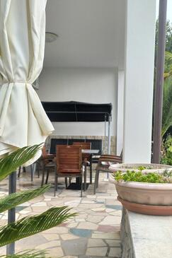 Ferienwohnung bietet Platz für 6 Gäste. Die Betten sind in Schlafzimmern, die es 3 gibt, innerhalb einer Gesamtfläche von 74m2, angeordnet. Die Gäste haben eine eigene Terrasse zur Verfügung, auf der sie in warmen Sommernächten genießen können. Das Apartment bietet Meerblick. Es ist erlaubt, Speisen auf dem Gemeinschafts-Grill vorzubereiten.