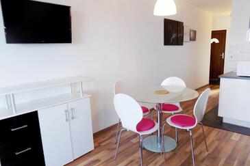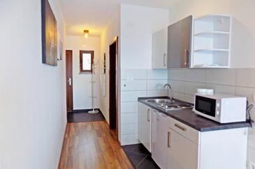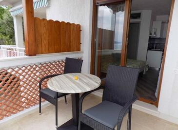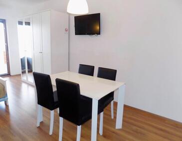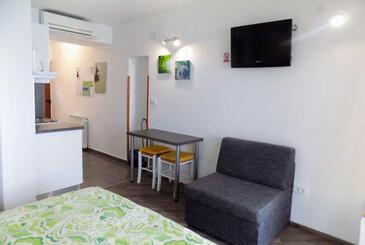 Ferienwohnung bietet Platz für 3 Gäste. Die Betten sind in Schlafzimmern, die es 1 gibt, und in Wohnzimmer, innerhalb einer Gesamtfläche von 31m2, angeordnet. Die Gäste haben eine eigene Terrasse zur Verfügung, auf der sie in warmen Sommernächten genießen können. Das Apartment bietet Meerblick. Es ist erlaubt, Speisen auf dem Gemeinschafts-Grill vorzubereiten.