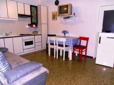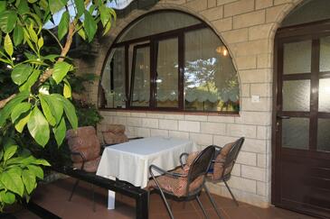 Ferienwohnung bietet Platz für 8 Gäste. Die Betten sind in Schlafzimmern, die es 3 gibt, innerhalb einer Gesamtfläche von 88m2, angeordnet. Die Gäste haben eine eigene Terrasse zur Verfügung, auf der sie in warmen Sommernächten genießen können. Das Apartment bietet Meerblick. Es ist erlaubt, Speisen auf dem Gemeinschafts-Grill vorzubereiten. In der Unterkunftseinheit besteht die Möglichkeit des Mitbringens von Haustieren gegen Aufpreis.