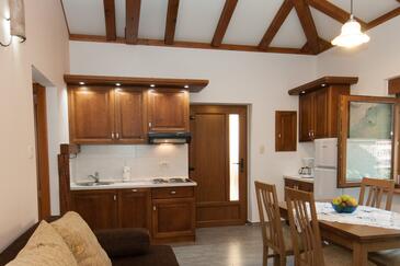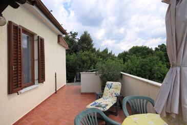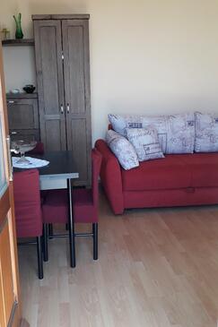 Ferienwohnung bietet Platz für 4 Gäste. Die Betten sind in Schlafzimmern, die es 1 gibt, und in Wohnzimmer, innerhalb einer Gesamtfläche von 32m2, angeordnet. Die Gäste haben eine eigene Terrasse zur Verfügung, auf der sie in warmen Sommernächten genießen können. Das Apartment bietet Meerblick. Es ist erlaubt, Speisen auf dem Gemeinschafts-Grill vorzubereiten.