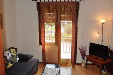 Ferienwohnung bietet Platz für 5 Gäste. Die Betten sind in Schlafzimmern, die es 1 gibt, und in Wohnzimmer, innerhalb einer Gesamtfläche von 33m2, angeordnet. Die Gäste haben eine eigene Terrasse zur Verfügung, auf der sie in warmen Sommernächten genießen können. Das Apartment bietet Meerblick.