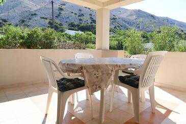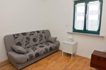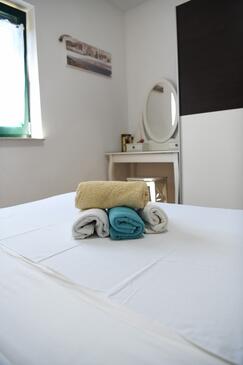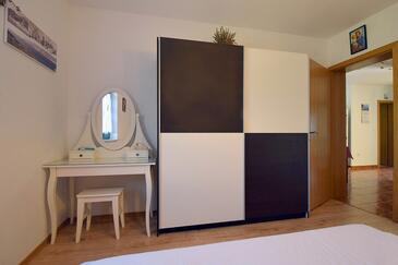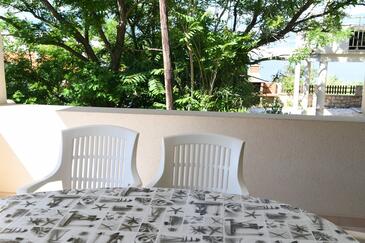 Ferienwohnung bietet Platz für 5 Gäste. Die Betten sind in Schlafzimmern, die es 2 gibt, innerhalb einer Gesamtfläche von 53m2, angeordnet. Die Gäste haben eine eigene Terrasse zur Verfügung, auf der sie in warmen Sommernächten genießen können. Das Apartment bietet Meerblick. Es ist erlaubt, Speisen auf dem Gemeinschafts-Grill vorzubereiten.