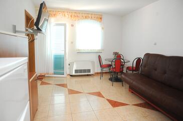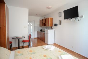 Ferienwohnung bietet Platz für 6 Gäste. Die Betten sind in Schlafzimmern, die es 2 gibt, und in Esszimmer, innerhalb einer Gesamtfläche von 50m2, angeordnet. Die Gäste haben eine eigene Terrasse zur Verfügung, auf der sie in warmen Sommernächten genießen können. Das Apartment bietet Meerblick. Während ihres Aufenthalts können Gäste das gemeinsam zur Nutzung stehende Schwimmbad benutzen.