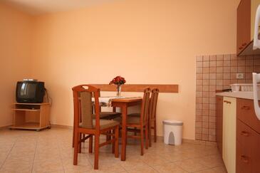 Ferienwohnung bietet Platz für 5 Gäste. Die Betten sind in Schlafzimmern, die es 1 gibt, und in Wohnzimmer, innerhalb einer Gesamtfläche von 34m2, angeordnet. Die Gäste haben eine eigene Terrasse zur Verfügung, auf der sie in warmen Sommernächten genießen können. Das Apartment bietet Meerblick. Es ist erlaubt, Speisen auf dem Gemeinschafts-Grill vorzubereiten. In der Unterkunftseinheit besteht die Möglichkeit des Mitbringens von Haustieren, und die Dienstleistung ist im Preis der Unterkunft enthalten. Durch die Terrasse der gebuchten Unterkunftseinheit gehen auch andere Gäste oder Vermieter.