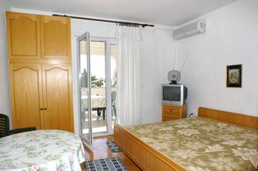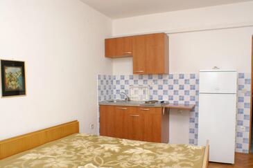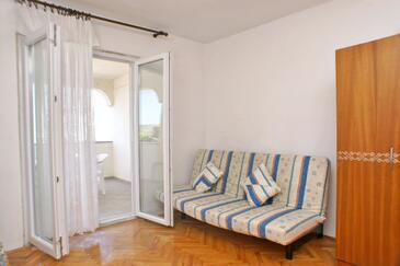 Ferienwohnung bietet Platz für 5 Gäste. Die Betten sind in Schlafzimmern, die es 1 gibt, und in Wohnzimmer, innerhalb einer Gesamtfläche von 36m2, angeordnet. Die Gäste haben eine eigene Terrasse zur Verfügung, auf der sie in warmen Sommernächten genießen können. Das Apartment bietet Meerblick. Es ist erlaubt, Speisen auf dem Gemeinschafts-Grill vorzubereiten. In der Unterkunftseinheit besteht die Möglichkeit des Mitbringens von Haustieren gegen Aufpreis.
