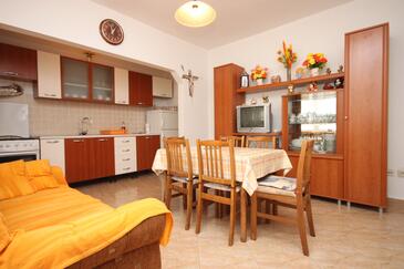 Ferienwohnung bietet Platz für 8 Gäste. Die Betten sind in Schlafzimmern, die es 3 gibt, innerhalb einer Gesamtfläche von 97m2, angeordnet. Die Gäste haben eine eigene Terrasse zur Verfügung, auf der sie in warmen Sommernächten genießen können. Das Apartment bietet Meerblick. Es ist erlaubt, Speisen auf dem Gemeinschafts-Grill vorzubereiten. In der gebuchten Unterkunftseinheit zahlt man am Ort ein Depositum ( der Preis ist an der Internetseite angeführt ).