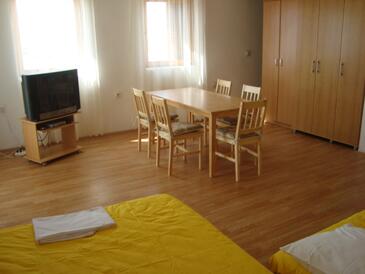 Ferienwohnung bietet Platz für 4 Gäste. Die Betten sind in Schlafzimmern, die es 1 gibt, und in Esszimmer, innerhalb einer Gesamtfläche von 32m2, angeordnet. Die Gäste haben eine eigene Terrasse zur Verfügung, auf der sie in warmen Sommernächten genießen können. Das Apartment bietet Meerblick. Es ist erlaubt, Speisen auf dem Gemeinschafts-Grill vorzubereiten. In der Unterkunftseinheit besteht die Möglichkeit des Mitbringens von Haustieren gegen Aufpreis.